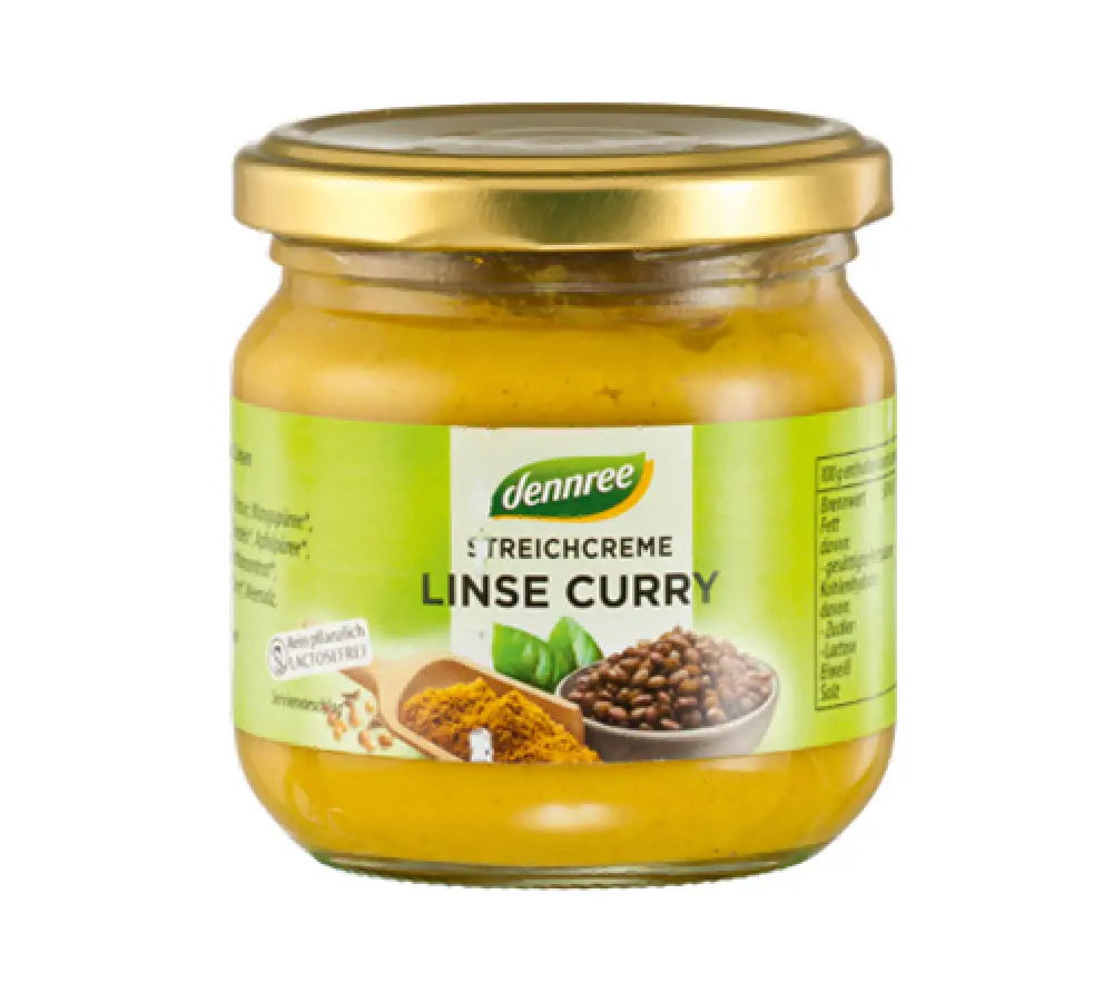 leća 22 %, kokosovo mlijeko, voda, pire manga, sok od jabuke iz koncentrata, luk, pire od jabuke, sok od limuna iz koncentrata, suncokretovo ulje, šećer od šećerne trske, curry, morska sol, začini, senf