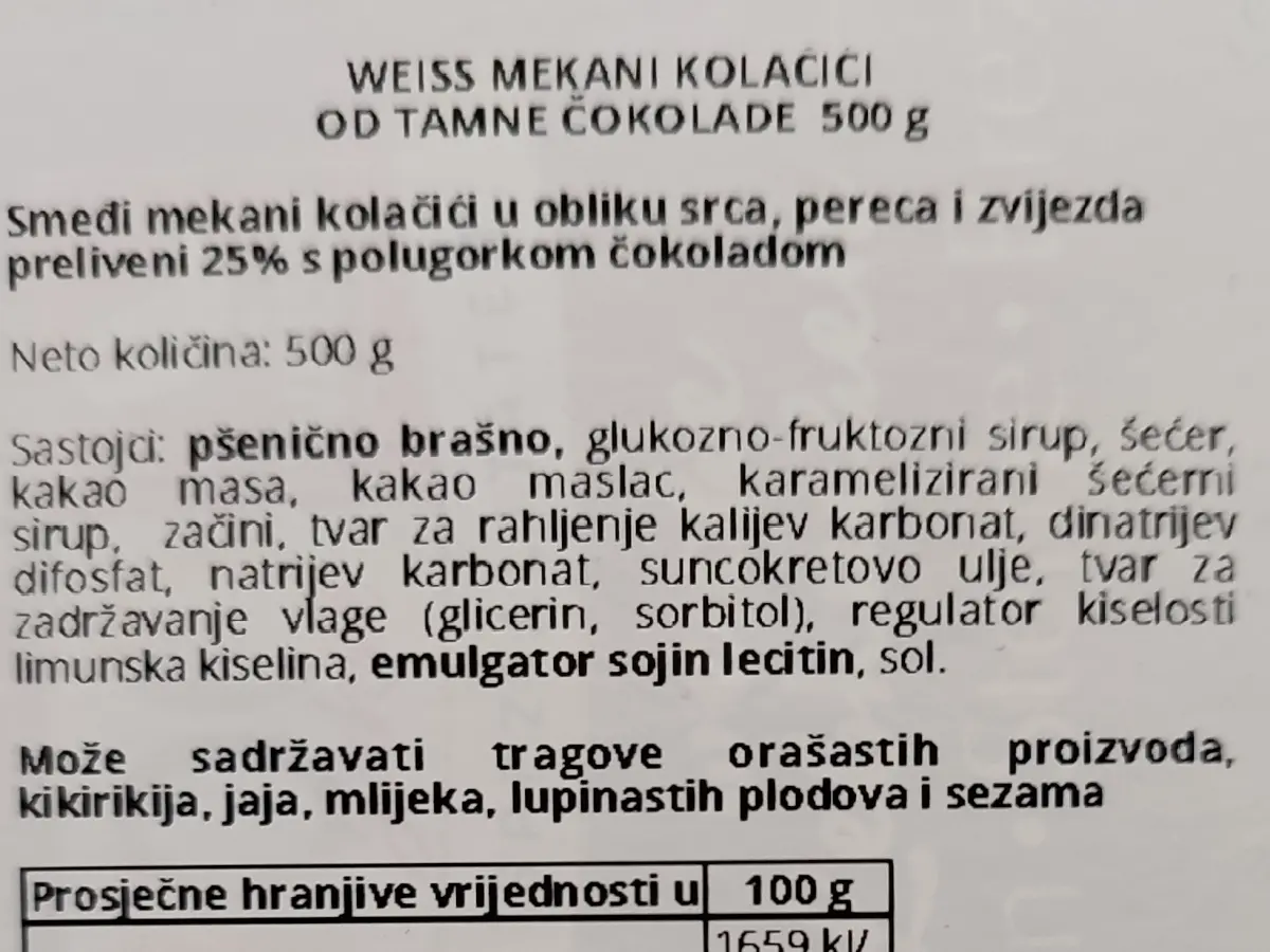 Mekani kolačići s tamnom čokoladom 500 g