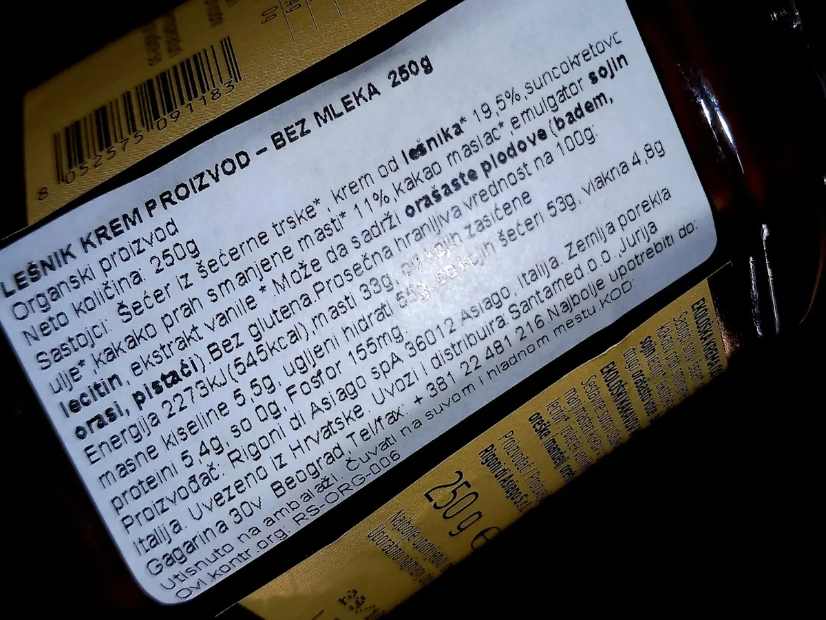 Šećer iz šećerne trske*, krem od lešnika* 18 %, suncokretovo ulje*, kakako prah* 11 %, kakao maslac*, ekstrakt vanile*